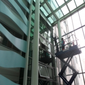 실내유리 청소작업중
