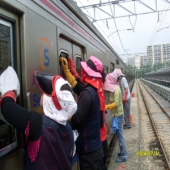 전동차 세척 작업중